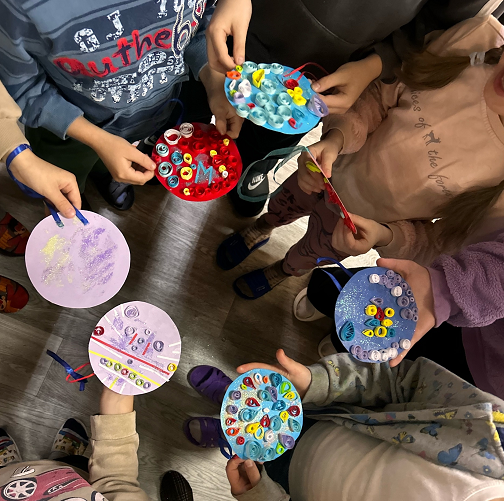 А ещё наши ребята, благодаря целевому финансированию из бюджета РД культурно-просветительской деятельности ГБУ «Культурный центр народов Дагестана в Ставропольском крае» приобрели нужный реквизит и провели увлекательный мастер-класс по изготовлению новогодних игрушек в технике квиллинг. Дети с удовольствием осваивали новый вид творчества, создавая оригинальные украшения для елки своими руками.