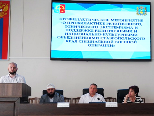 Меры по устранению условий и возможных намерений радикализации членов религиозных объединений, исповедующих утвердившиеся на территории Ставропольского края традиционные вероучения, а также дополнительные меры по поддержке бойцов, выполняющих боевые задачи в зоне СВО, обсуждены на встрече представителей духовенства и землячеств Андроповского, Кочубеевского и Минераловодского округов в центре Андроповского муниципального округа – с. Курсавка.